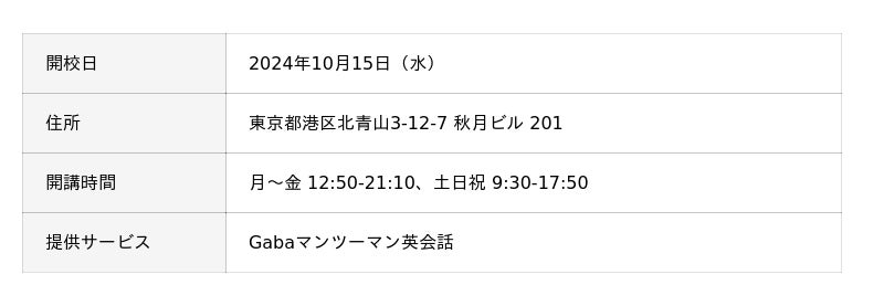 「株式会社GABA(ガバ)(本社:東京都品川区、代表取締役社長:隈井 恭子)」が運営する「Gabaマンツーマン英会話」は2025年10月15日(水)「Gaba表参道ラーニングスタジオ」をオープンすることをお知らせいたします。
