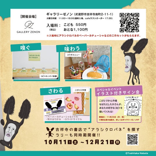 また、本イベントに先駆けて10月11日から開催される、街を使った体験型ゲームイベント「武蔵野市トレジャーハンティング15」とも連携。ギャラリーゼノンと吉祥寺エリアの5つの書店を巡る「アラシクロバネ調査ミッション」も開催されます。
