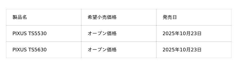 キヤノンは、家庭用インクジェットプリンター「PIXUS(ピクサス)」シリーズの新製品として、“TS5530/TS5630”の2 モデルを2025 年10 月23日に発売します。