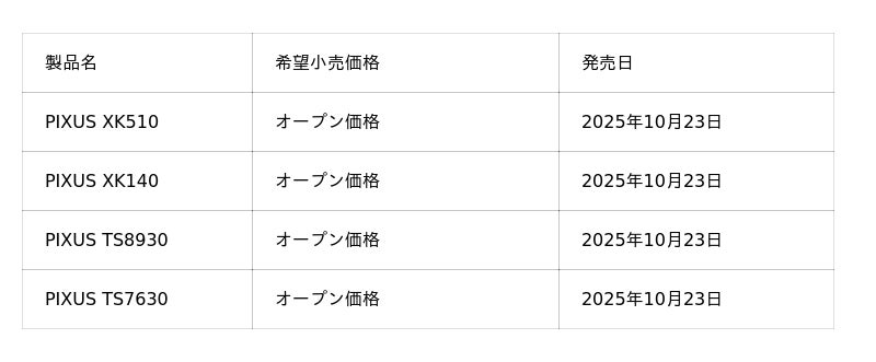 キヤノンは、家庭用インクジェットプリンター「PIXUS(ピクサス)」シリーズの新製品として、多機能モデル“XK510/XK140/TS8930/TS7630”の4モデルを2025年10月23日に発売します。
