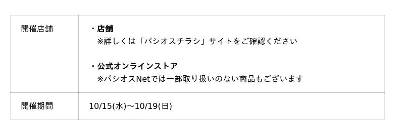 チラシの内容は、パシオスチラシサイト(https://www.paseos-chirashi.jp/)にて、10/14(火)夕方に公開予定です。