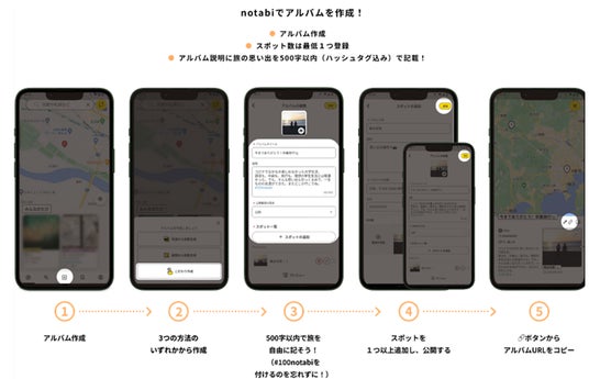 - notabiで「#100notabi」を付けたアルバムを投稿すること