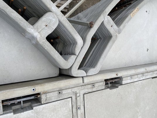 部材は共に百年住宅小牧工場(愛知県小牧市)で製作。3Dプリンター部材は13種類に分かれており、また、中空構造により軽量化も図られ、大型トラックにて容易に運搬が可能です。現地で組み立てた後に、中空部分へコンクリートと鉄筋を差し込み連結させます。
