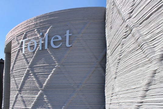 今回の公衆トイレの構造躯体はPCパネル部材を現場で組み立てるWPC工法。その後構造躯体を囲むように意匠の壁として建築用3Dプリンターで制作した部材を設置。これまで鉄筋コンクリート造では困難であった、円形や曲線、表面の凹凸を3Dプリンターを用いることで実現しました。