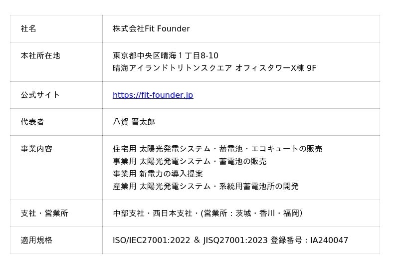今回、再生可能エネルギー設備の普及を通じて顧客の環境経営を支援するFit Founderと、J-クレジットを中心とした環境価値創出・販売に強みを持つバイウィルが協力することで、全国で太陽光発電設備を導入する事業者からの環境価値創出・クレジット化を一層推進して参ります。