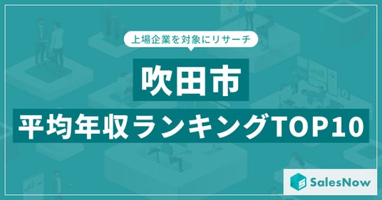株式会社SalesNow(本社:東京都渋谷区、代表取締役:村岡功規、以下「当社」)は、国内540万社の企業情報を完全網羅した日本最大級のデータベース「SalesNow DB」より、上場企業を対象とした「市区町村別の平均年収ランキング」を発表しました。本リリースでは、各都市別のデータをもとに、今回は「吹田市に本社を置く企業」を対象に、平均年収にフォーカスしています。