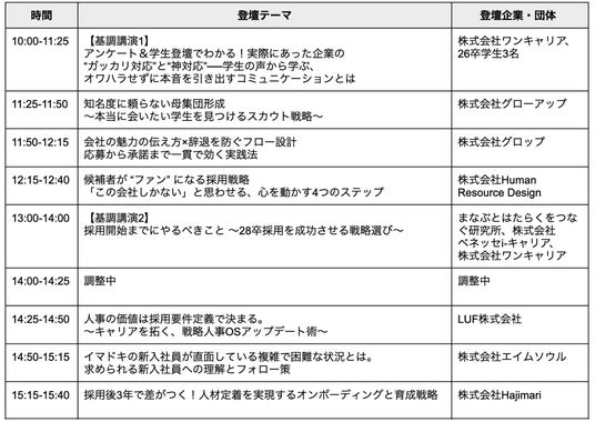 参加対象 :企業・団体の人事・採用担当者