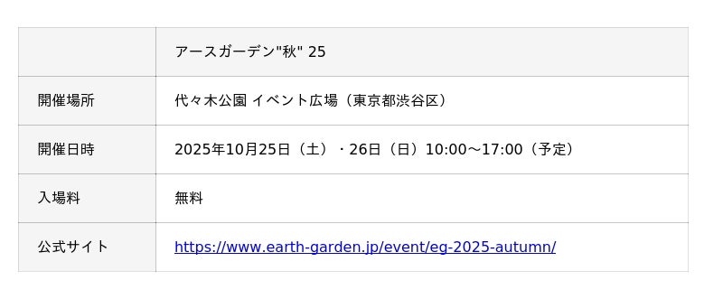 「アースガーデン"秋"」では、秋の美味しいもの、自然の恵みから得たクラフト作品、自然に負担をかけない商品、世界の手仕事品、文化などストーリーのあるモノとそれを語るヒトとの出会いが会場内に溢れます。