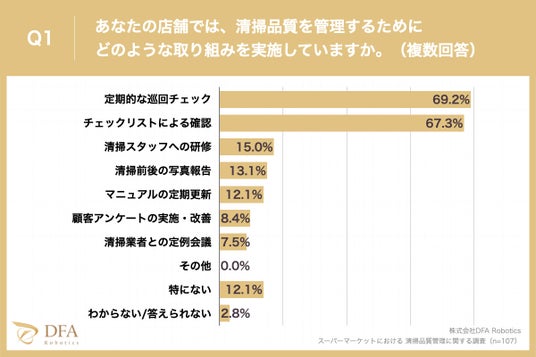 - Q1:あなたの店舗では、清掃品質を管理するためにどのような取り組みを実施していますか。(複数回答)