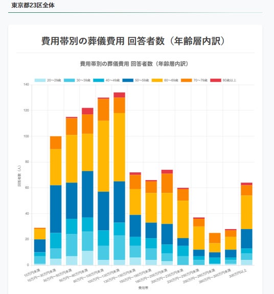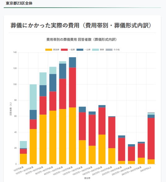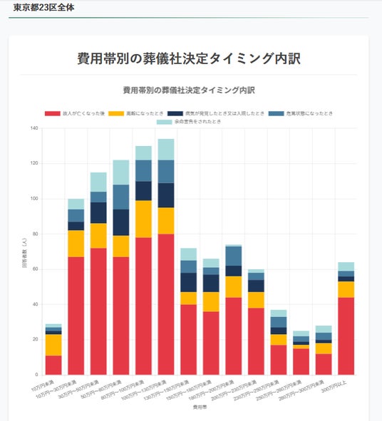 詳細なデータをグラフ化し公開することで、東京都23区における葬儀の意思決定が可視化されました。