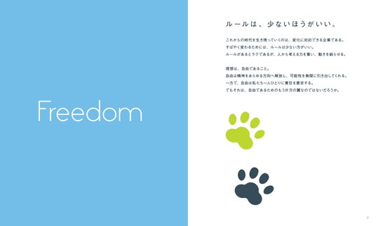・経営理念やビジョンを優しく寄り添う形で提示しており、冊子を手元に置いて必要な時に開ける「安心感のある存在」として位置付けられている点が好意的に受け止められています。