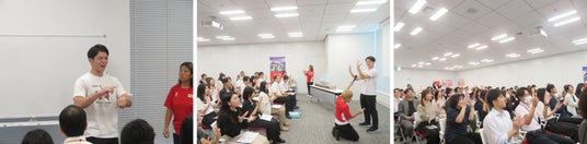 従業員全員で行った参加型企画の「伝言ゲーム」では、慣れない口話やジェスチャーでコミュニケーションをとることの難しさが各々の表情から伝わり、体験型ワークの「手話勉強会」では様々な日常的な単語をデフアスリートから学びました。