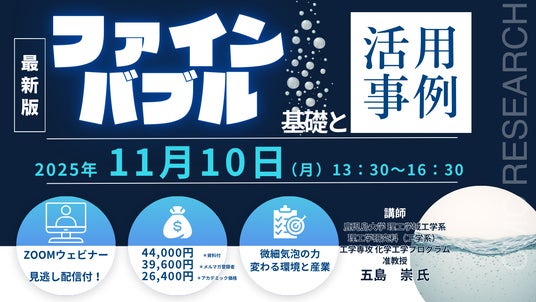 【ライブ配信/ZOOM】「ファインバブルの基礎と活用事例」セミナー開催!11月10日(月)主催:(株)シーエムシー・リサーチ