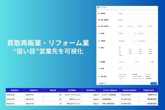 買取再販業・リフォーム業の“狙い目”営業先を可視化、営業の効率化と利益成長を支援する「長期空室・販売中物件リスト出力システム」の提供開始