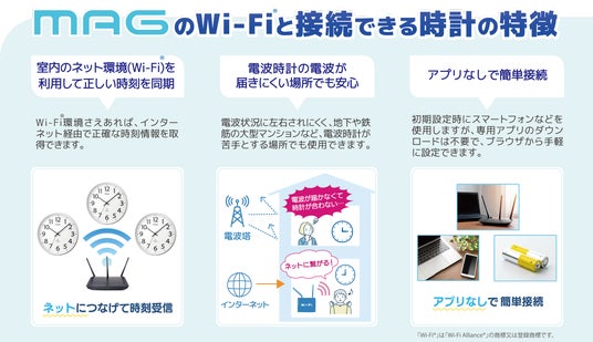 直営オンラインショップに予約受注殺到 ― Wi-Fi(R)接続で正確な時刻同期を実現する『MAG無線LAN時計』、10モデルを10月10日(金)より順次発売