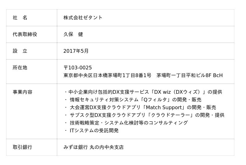 - DX wiz(DXウィズ) サービスのご紹介:https://zettant.com/dx-wiz/- Qフィルタ サービスのご紹介:https://www.qfilter.net/