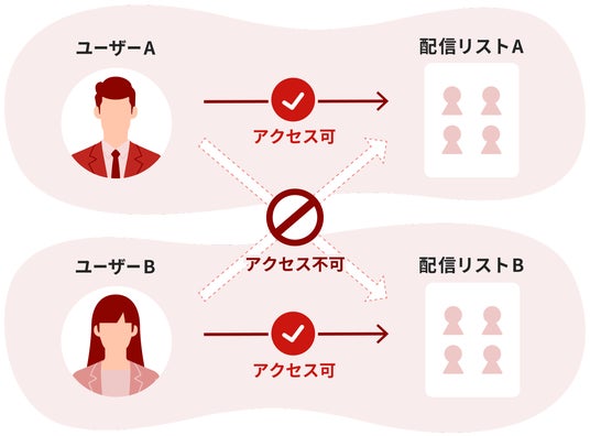 ユーザーごとに配信先リストや読者データへのアクセス権限を設定ができます。誤ったリストへの誤配信や、個人情報漏洩のリスクを防げます。