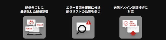 大量のメールでも配信速度や到達率を落とすことなく届けられる高い配信性能を特長としており、ニーズに合わせて選べる豊富なプランが月額4,000円(税別)からというリーズナブルな価格で利用できる点も魅力です。