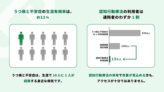 うつ病や不安症は、誰もが直面し得る身近な病気であり、日本では生涯で約10人に1人が経験するとされています。メンタルクリニック等を受診する方は年々増えていますが、その治療法は薬物療法が中心となっています。