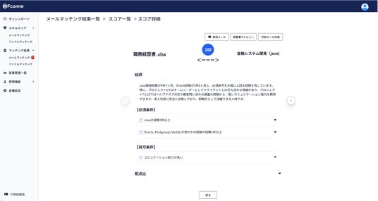 【マッチング結果の詳細画面】 評価内容とマッチ度を表示します。