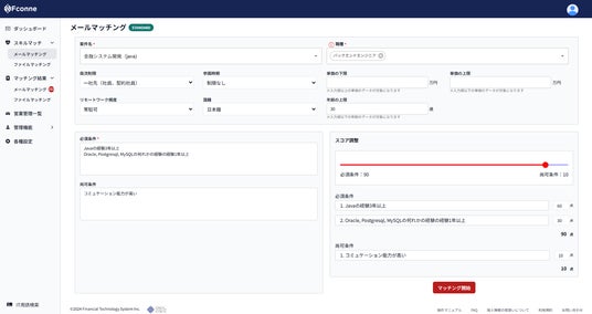 「Fconne」は、プロジェクトと人材のマッチ度を数値で算出し、IT業界未経験の営業でも迅速かつクオリティの高い提案ができるAIマッチングサービスです。2024年9月1日に正式リリースしました。