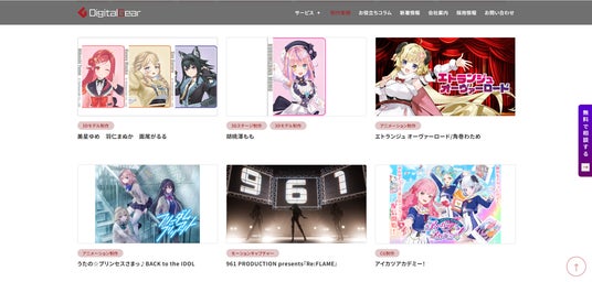 新サイトでは、当社が手掛けたVTuberやアニメーションなどの制作事例を一覧でご覧いただける 「制作実績」 ページを整理しました。また、デジタルギアのノウハウをお届けする 「お役立ちコラム」、メディア掲載やイベント出展などを紹介する 「新着情報」 ページを追加し、最新情報を随時発信していきます。