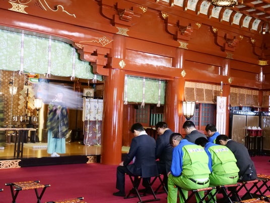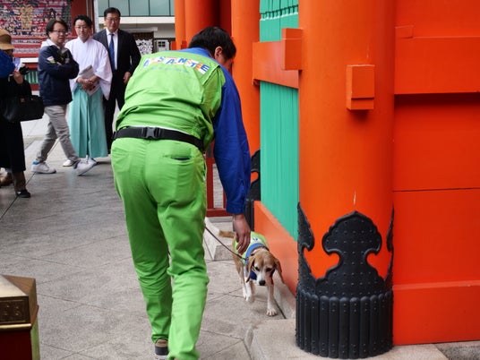 プロジェクト成功祈念の祈祷を神田明神にて実施し、シロアリ探知犬が「隨神門」を調査 アサンテ「木の文化継承プロジェクト」発足記者発表会
