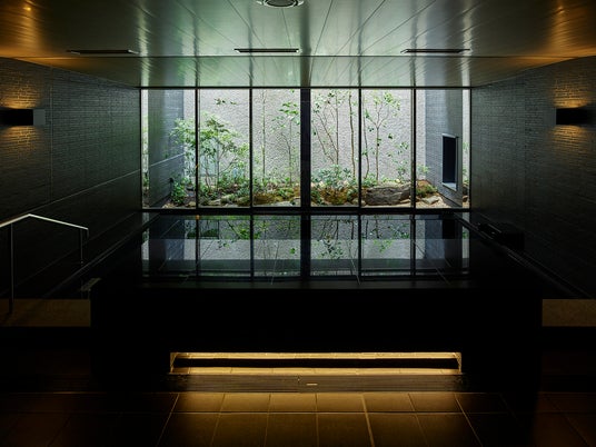 ・三井ガーデンホテル京都三条プレミアコンセプトは“三条通りと出会う『オモテ』と『オク』。館内には中庭を臨むロビーラウンジや貸切利用できるプライベートバスを備え、京都らしい静寂と癒しの滞在を演出します。