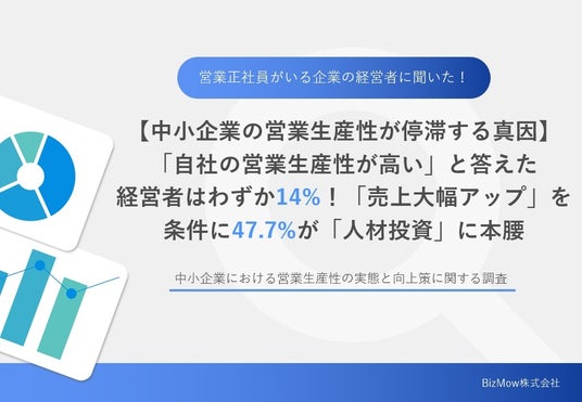 オンライン事務・経理代行サービスを提供しているBizMow株式会社(本社:東京都世田谷区・代表取締役:木村仁哉)は、株式会社給与アップ研究所(本社:東京都千代田区・代表取締役:高橋 恭介)と共同で、中小企業における営業生産性の実態と向上策に関する調査を実施しましたので、ご報告いたします。また、最新のアウトソーシング活用した、営業生産性の大幅向上と、売上アップを実現するための無料オンラインセミナーを開催することも決定いたしました。