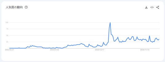 ここ数年で、「イマーシブ○○○」というワードを見聞きすることが増えました。実際Google Trendsで「イマーシブ」という検索ワードを過去3年(2022年3月~2025年2月末)で調べてみると、下図のようなトレンドになっています。