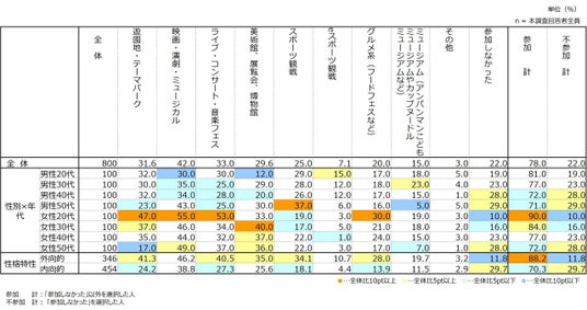 続いて、性格特性別では、内向的な人と比べ外向的な人の方が、どのイベントでも参加率が高い結果となった。