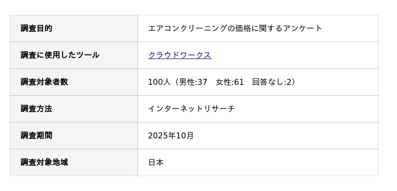 エアコンクリーニングの価格に関するアンケート調査の概要