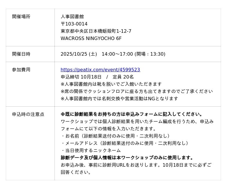 【10/25(土)】個性を活かして組織パフォーマンスを高める!「FFS理論」をヒントに組織デザインを考えるワークショップを開催|人事図書館