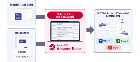 本機能は、AIエージェントが導入企業の公開情報や過去のアンケート回答内容などをもとにサステナビリティ・ESG関連アンケートの回答案を自動作成し、作成根拠と共に提示するアシスト機能で、2024年12月に提供を開始しました。