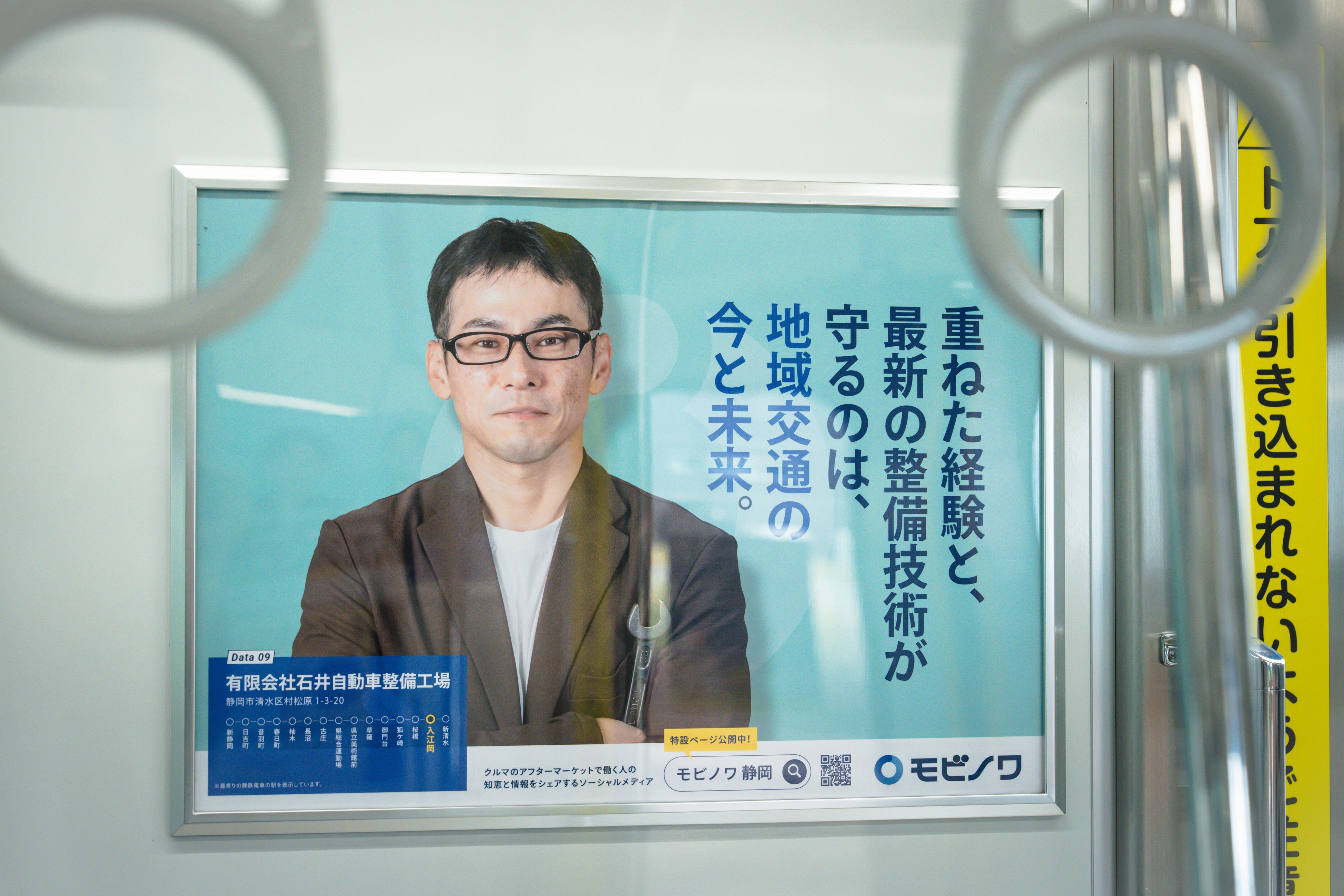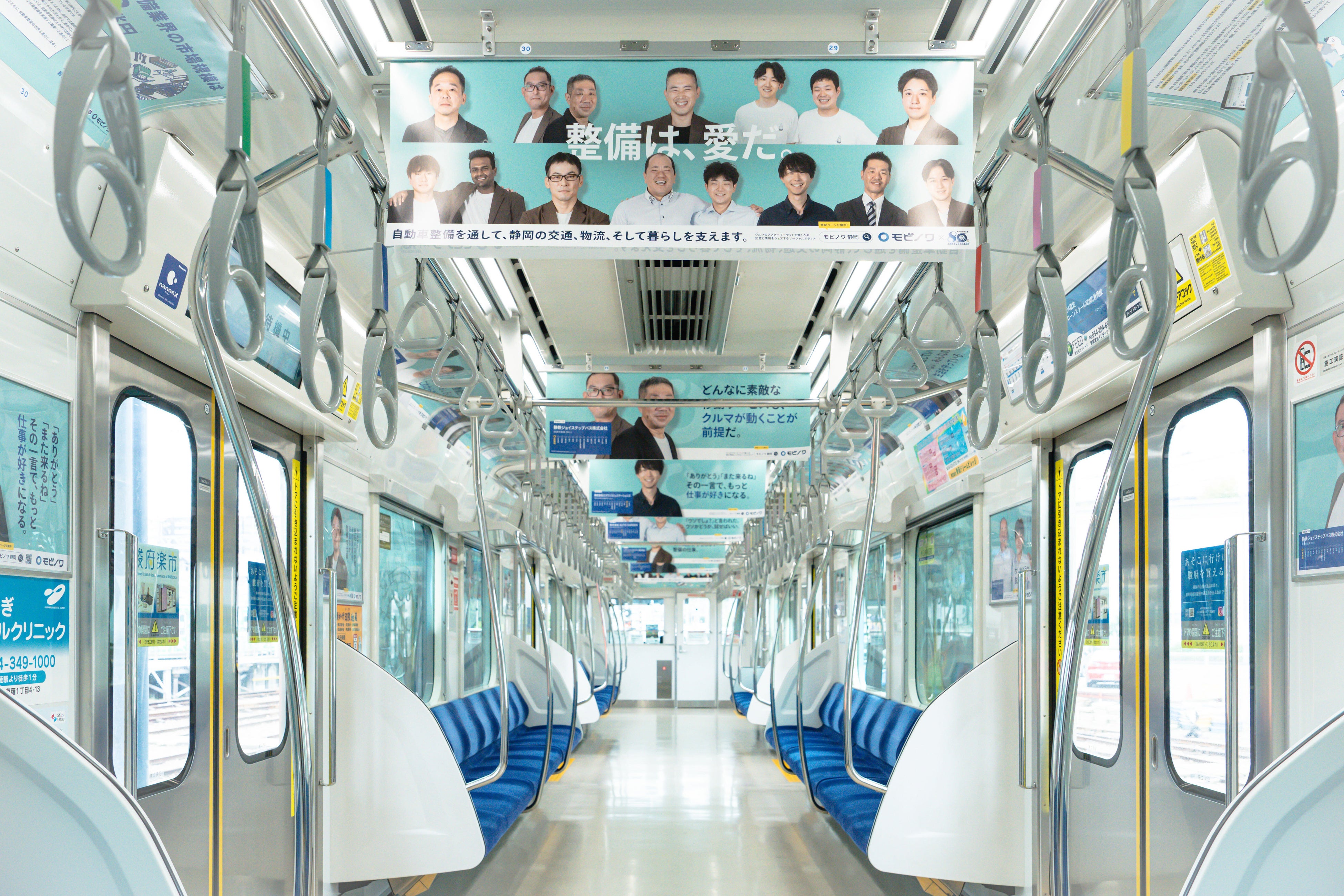イベントのメインは、静鉄電車の広告ジャック。「整備は、愛だ。」をテーマに静鉄電車の「Clear Blue」カラー車両1編成に期間限定で広告を掲出中です。さらに、フリーペーパーと特設サイトを用意。静岡鉄道の広告を中心にさまざまな媒体を活用して、静岡市内の皆さんに自動車整備業界で「働く人」の魅力に触れていただく機会を創出します。