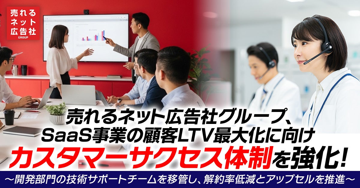 売れるネット広告社グループ、SaaS事業の顧客LTV最大化に向けカスタマーサクセス体制を強化!~開発部門の技術サポートチームを移管し、解約率低減とアップセルを推進~