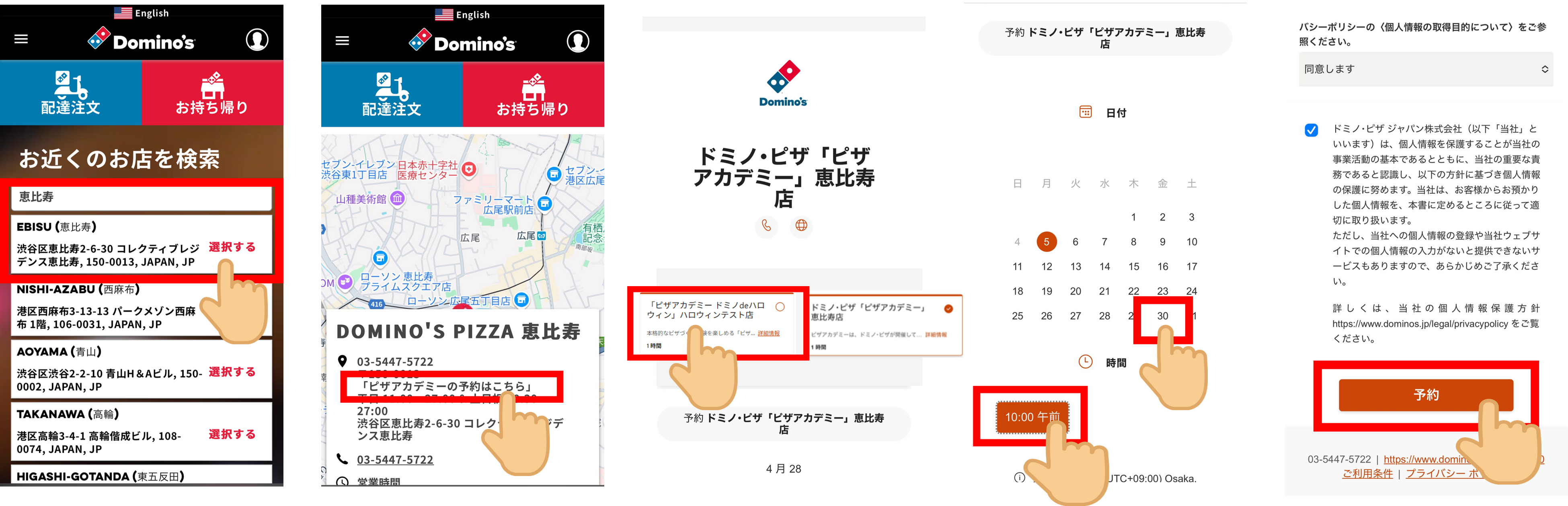 「ピザアカデミー ドミノdeハロウィン」ご体験を希望の場合は、ご予約時に、「ピザアカデミー ドミノdeハロウィン」を選択いただき、参加当日、担当店舗のスタッフに「ピザアカデミー ドミノdeハロウィン」ご希望の旨をお伝えください。