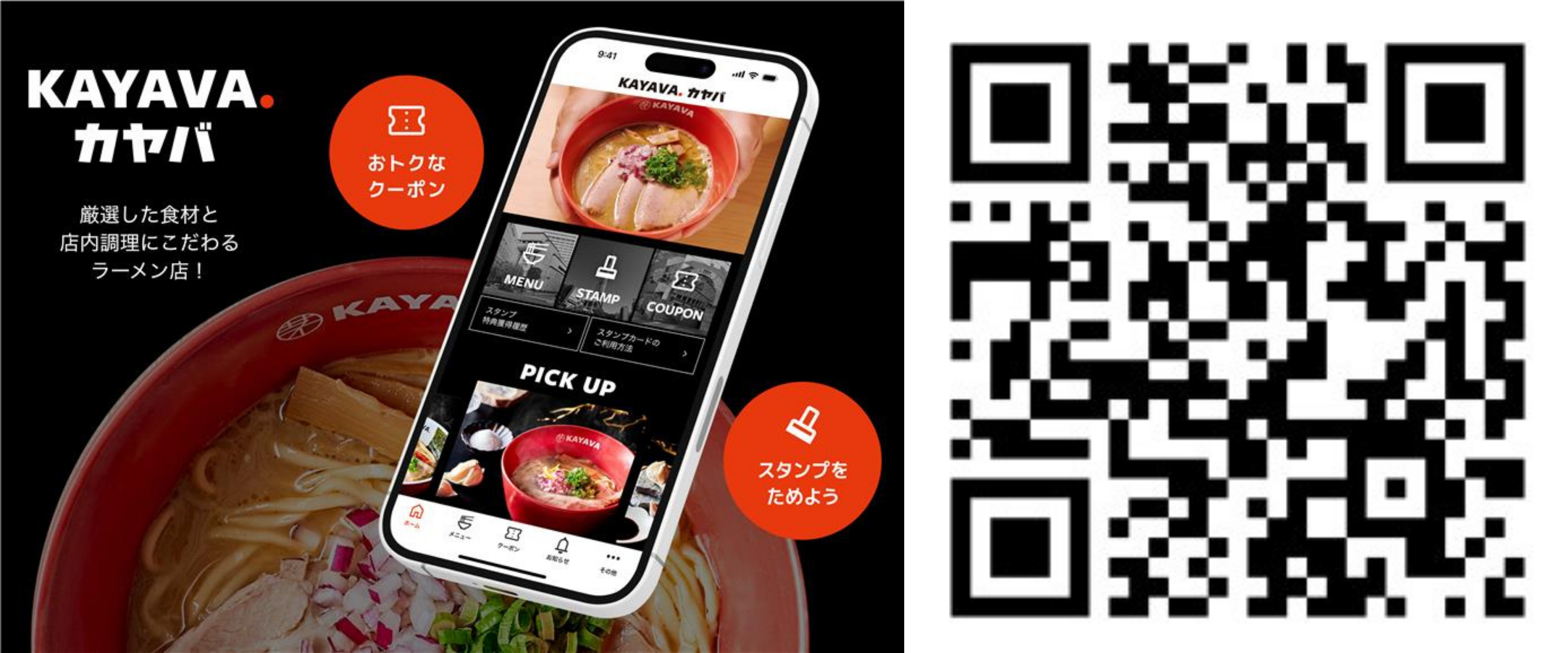 アプリ会員様限定で、10月15日(水)から11月29日(土)まで最大150円引きクーポンを配信いたします。アプリでは、「KAYAVA.」の魅力をお伝えするムービーやメニューの閲覧、商品やキャンペーン情報をいち早くお知らせします。またご来店時にスタンプをお貯めいただくとスタンプ数に応じて、お得なクーポンと交換できます。この機会に、ぜひアプリをダウンロードいただき、クーポンをご利用ください。