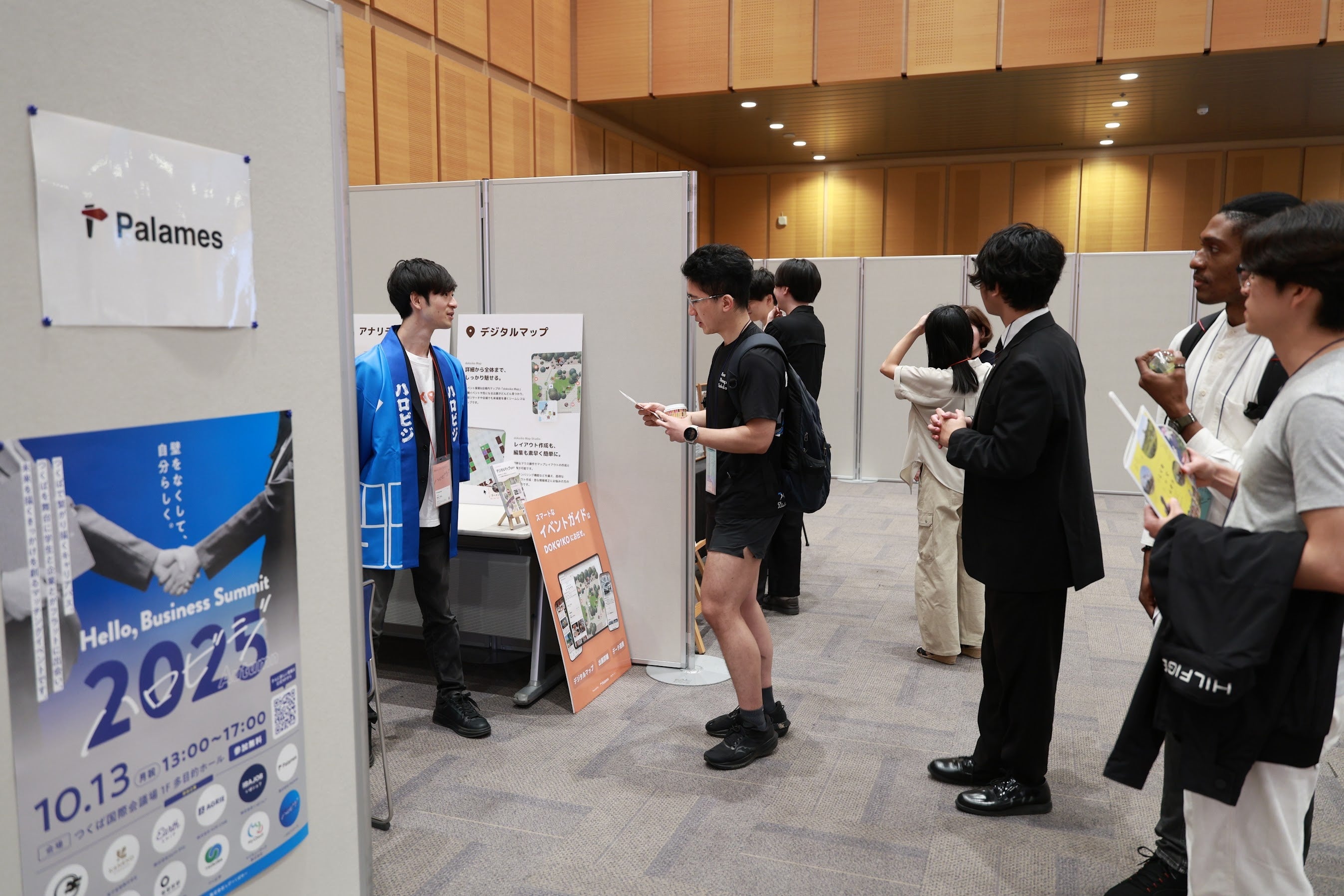 本イベントでは、筑波大学発ベンチャー「株式会社Palames」とコラボレーションし、デジタルマップや出展詳細などイベントの魅力を簡単かつ詳しく配信できるサービス「dokoiko」を導入。会場内で出展位置の確認はもちろんのことHPや詳細情報を確認する学生の姿もたくさん見られました。スタートアップに出展いただくのみならず一緒に創り上げるのがハロビジスタイルです。