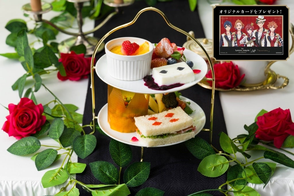 メニューは、シーズン1「エピソード オブ ハーツラビュル」にフォーカスした、ハーツラビュル寮のティーパーティーをイメージし、その世界観を詰め込んだアフタヌーンティーのほかに、作中に登場するキャラクターをイメージしたメニューや各寮のカラーイメージしたドリンクなど、フォトジェニックで、趣向を凝らした楽しいお食事をご用意いたしました。