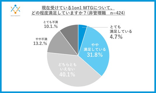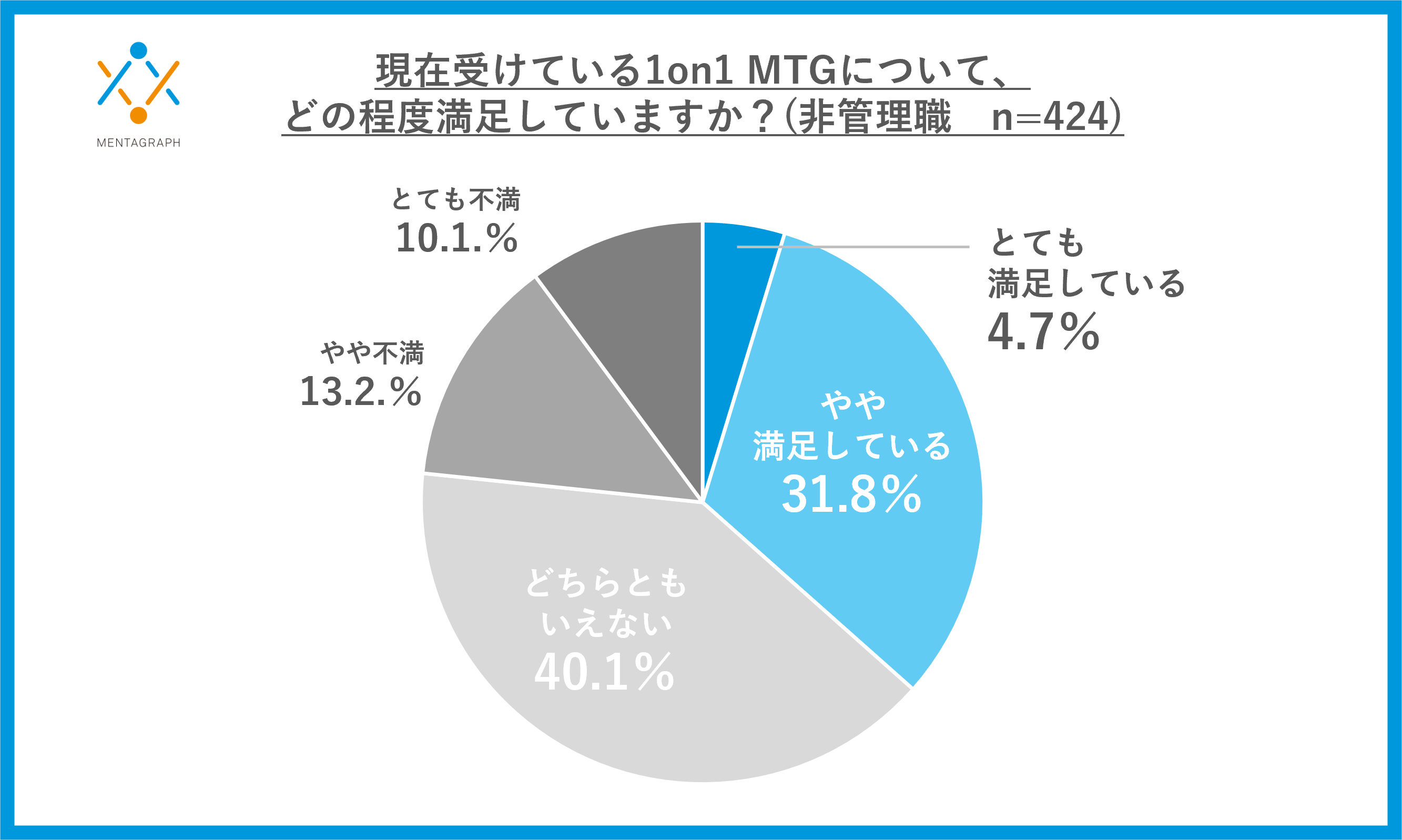 さらに、現在受けている1on1 MTGへの満足度を非管理職に質問したところ、満足しているのは、36.5%(満足:4.7%・やや満足:31.8%)に留まりました。