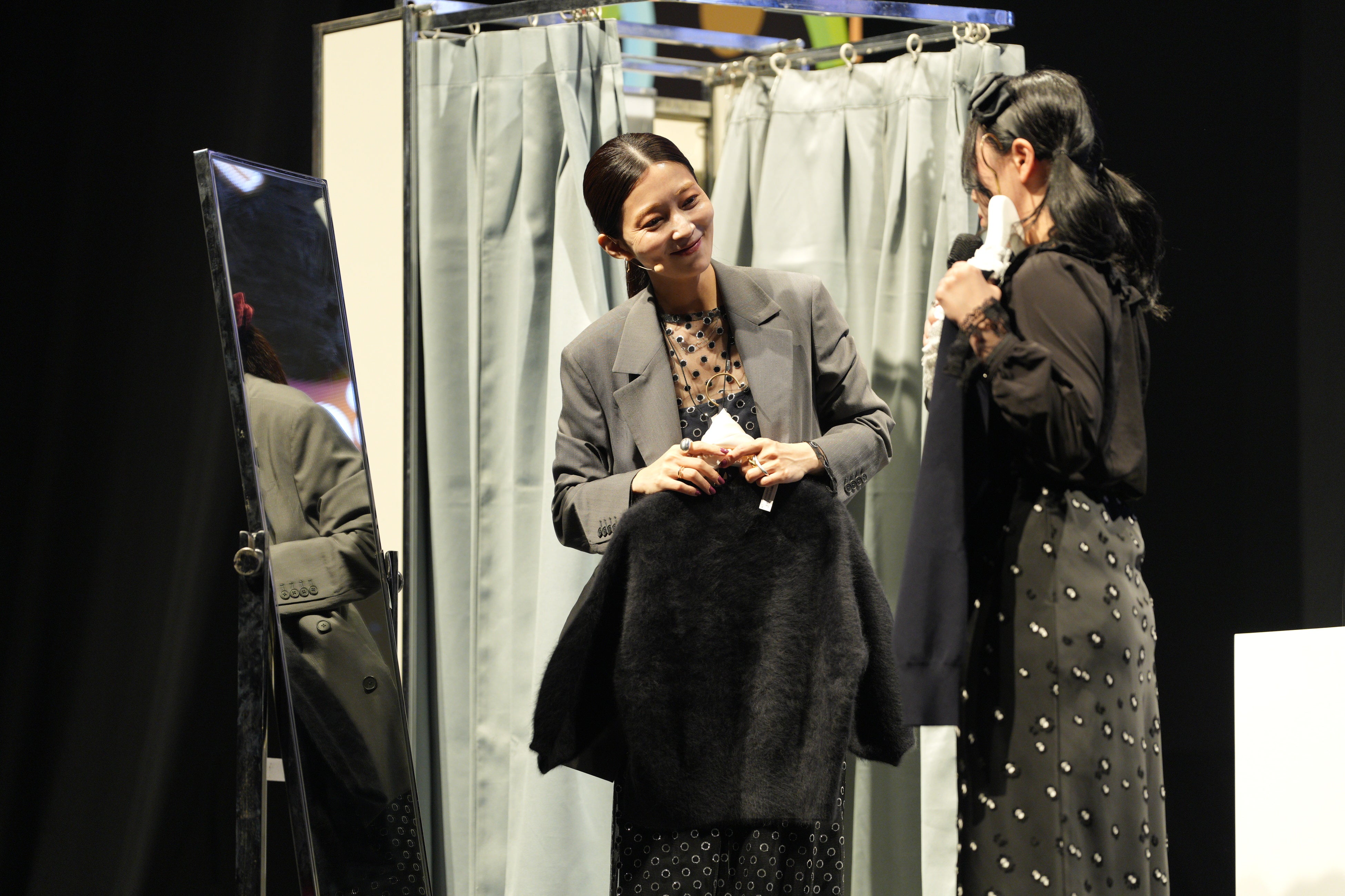 2023年大会でのグランプリ受賞後、今回で3年連続のファイナルステージ参加となった仲。3人の子育てをしながら店頭に立ち、スタイリング写真を撮影してSNS発信する、そんな忙しい日々の中で大切にしてきた思いとは、オンラインでもリアルでもお客様と向き合う気持ちは何一つ変わらないということ。オンラインでも商品やスタッフを身近に感じていただける、そしてお客様の明日を創ることができる、洋服を通じて人とつながることができるこの仕事がやはり大好きとスピーチしました。この結果、スピーチ審査は2位となり、ROUND1・2の合計得点全体2位(同得点で1位だが規定により2位)で決勝進出を果たしました。