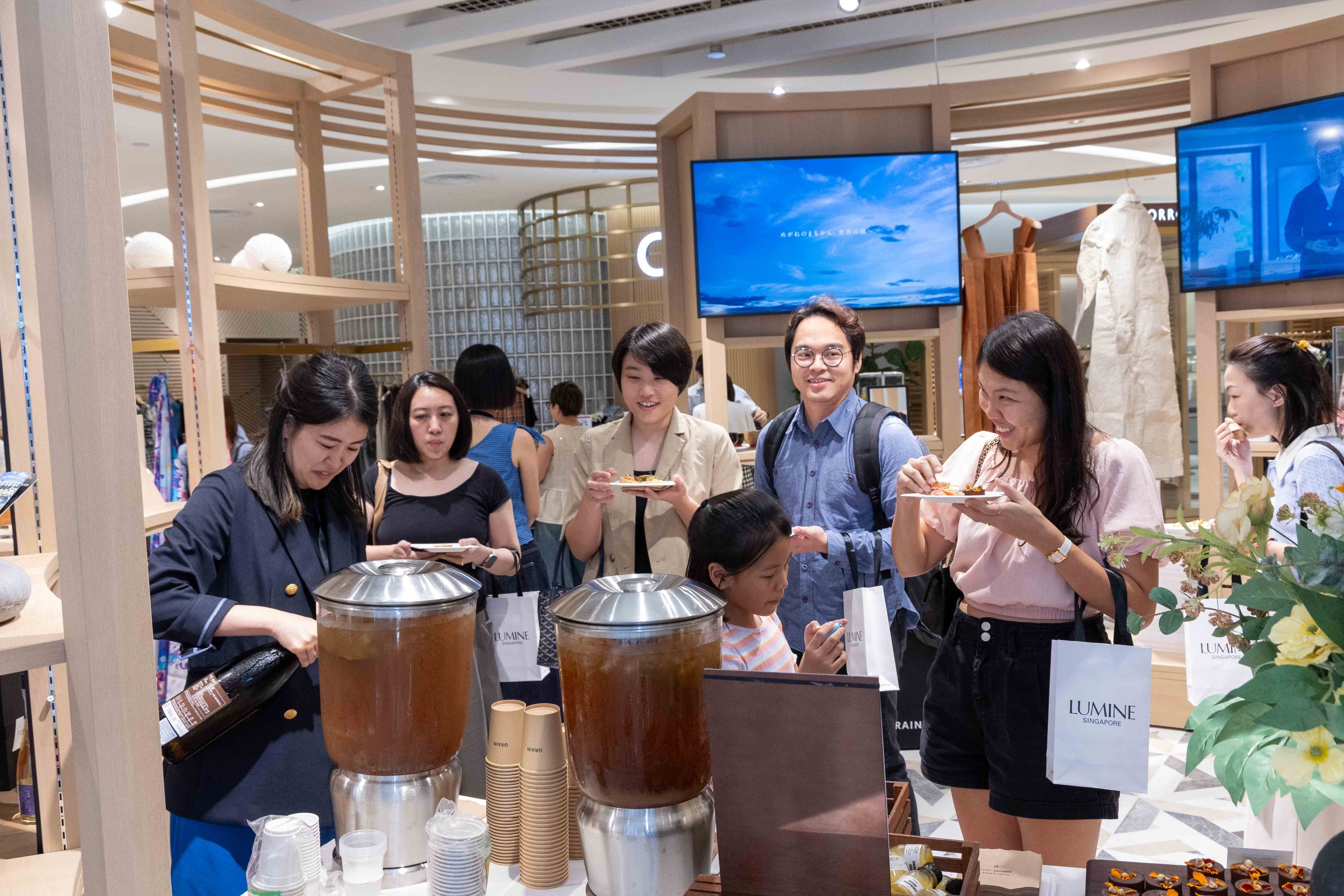 開業1周年の感謝を込めたVIP向けイベントには、VIP44名が参加。新作商品のお披露目や、福井県POP-UPとコラボした、限定ワークショップにご参加いただき、特別な夜をお過ごしいただきました。参加した顧客さまからは、「日本のファッションカルチャーをシンガポールで唯一体験できるのはルミネシンガポール。2年目以降もどんなワクワクするコンテンツが登場するのか、今から楽しみです。」「スタッフの方々がとても気さくで、他店舗にはない、心に寄り添った日本ならではの接客がとても魅力的。」など、今後のルミネシンガポールへの期待のコメントが多数寄せられました。