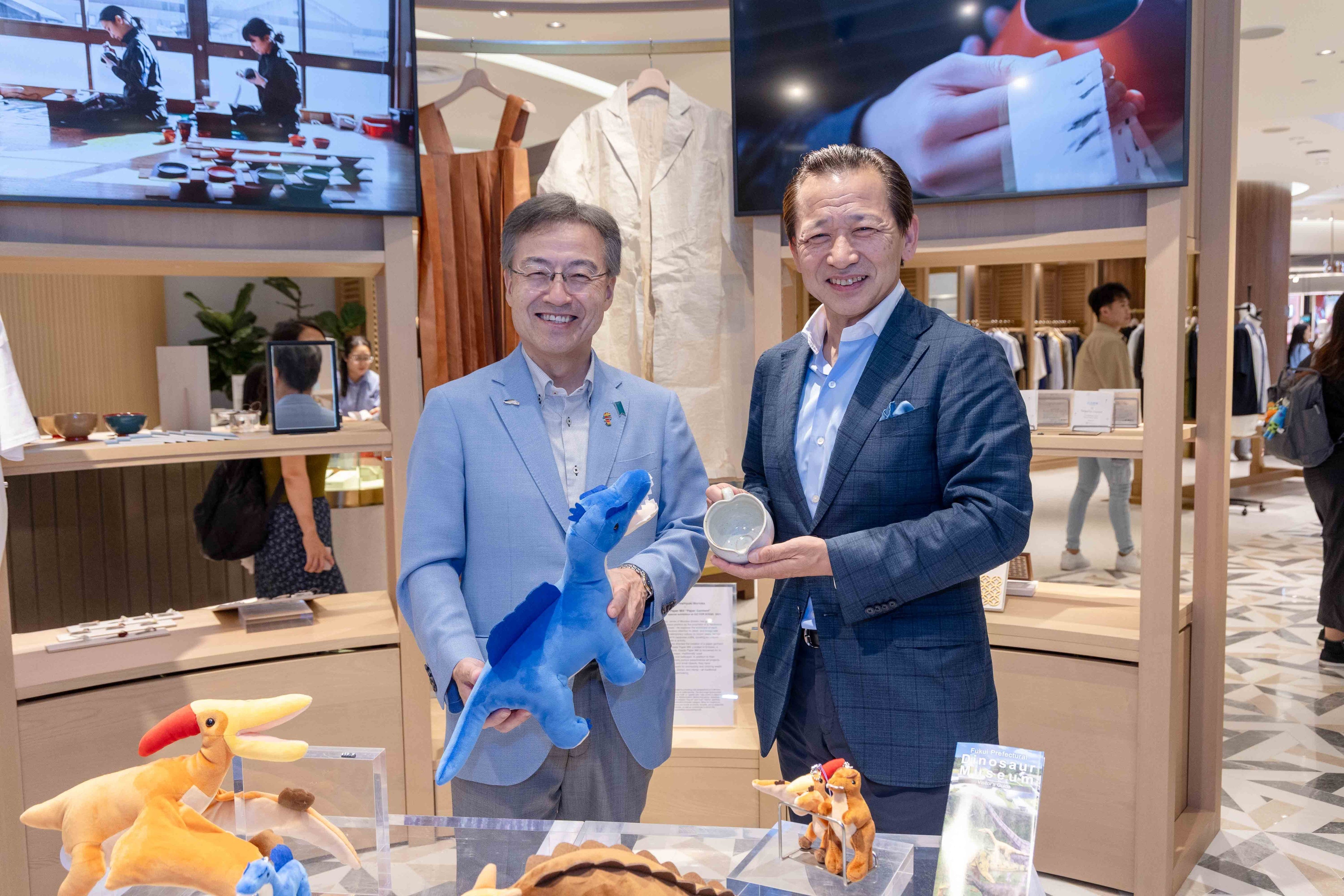 福井県杉本達治知事(左)とルミネ表輝幸社長(右)