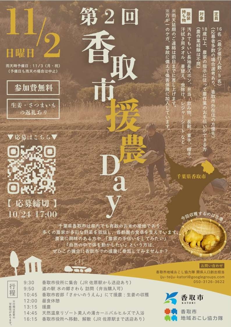 ・募集人数: 16名(最少催行人員5名。応募者多数の場合選考あり。香取市外在住の方優先)