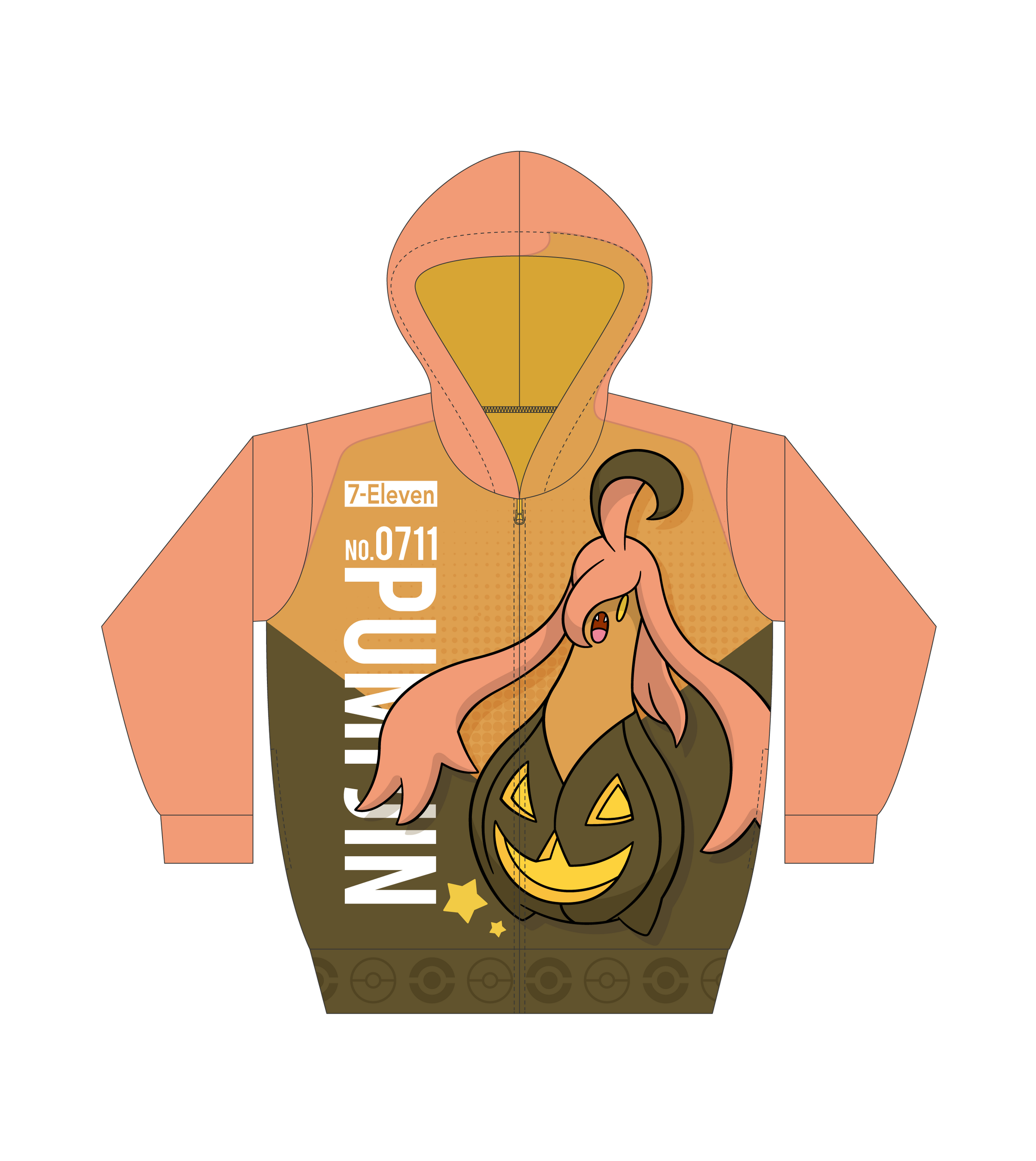 ポケモンずかんNo.0711(セブン‐イレブン)のパンプジンが全面にデザインされたフルグラフィックパーカーです。パンプジンファンにはたまらないグッズです。