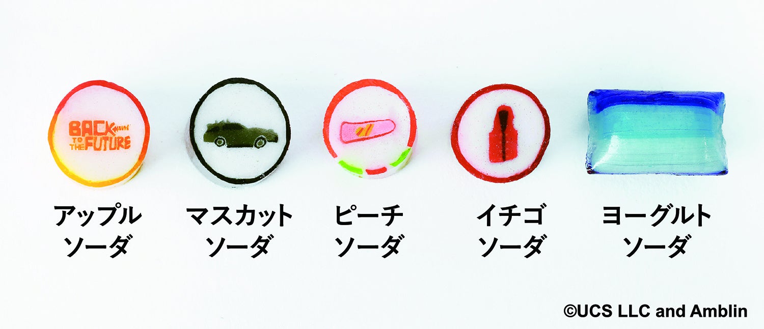 主人公マーティが大好きなコーラをベースにした「キャンディA」、爽快なソーダフレーバーを集めた「キャンディB」。あの味を思わせる味わいや、未来のカフェで手に取った気分を楽しめるアレンジも加わり、口に入れた瞬間に映画の世界へタイムスリップ!