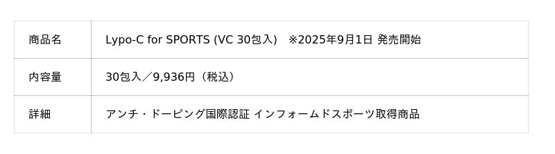 本取り組みでは、国際的アンチドーピング認証「インフォームドスポーツ」を取得した「Lypo-C for SPORTS」をチームに提供し、選手の日々のコンディション維持と健やかな活動をサポートします。