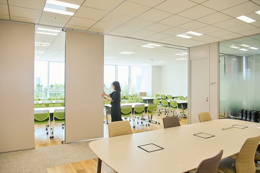 スライディングウォールで柔軟に切り替え可能なワークスペースで快適な業務環境を実現