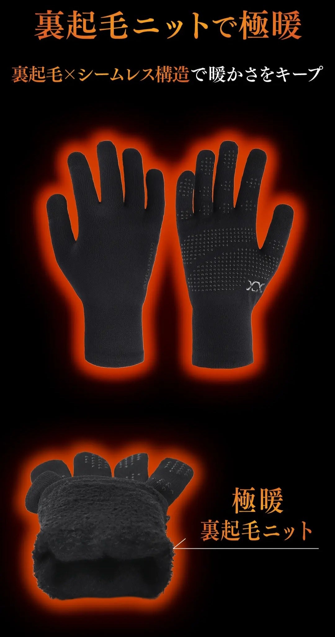 雨や雪の日でも快適に使える、防水×透湿×保温×スマホ操作対応の高機能ニットグローブ。通勤や自転車、アウトドアなど、冬のあらゆるシーンを快適にサポート。
